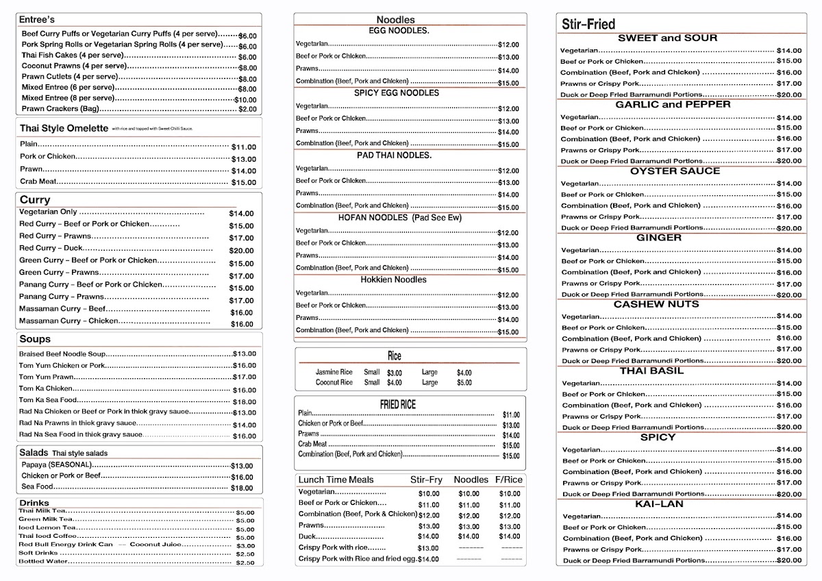 - Curry Selections: Choose from an array of Thai-style curries, encompassing classic favorites like Red and Green Curry, available in your choice of meat or vegetarian.